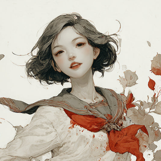 彼の作品には、終焉の中に咲く花、静かに武器を握る少女、
