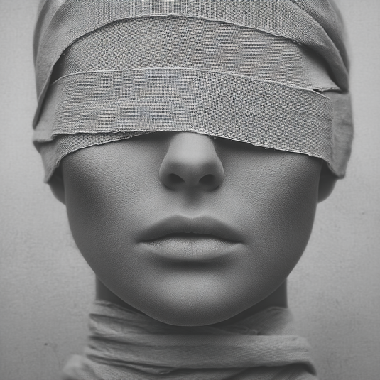 目隠しされた人物たちは、声を発することもなく、ただそこに“在る”。