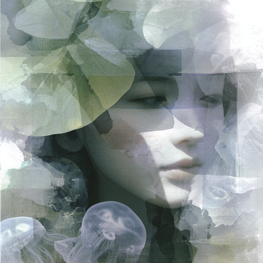 さらに、ぼかしやレイヤー処理による奥行きと半透明の質感が、「内側からの視線」や「内面世界」を感じさせる仕掛けに。
