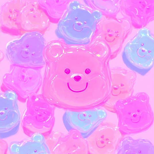 グミのようでおもちゃのような曖昧な質感、甘さと無機質さが共存する構図。
