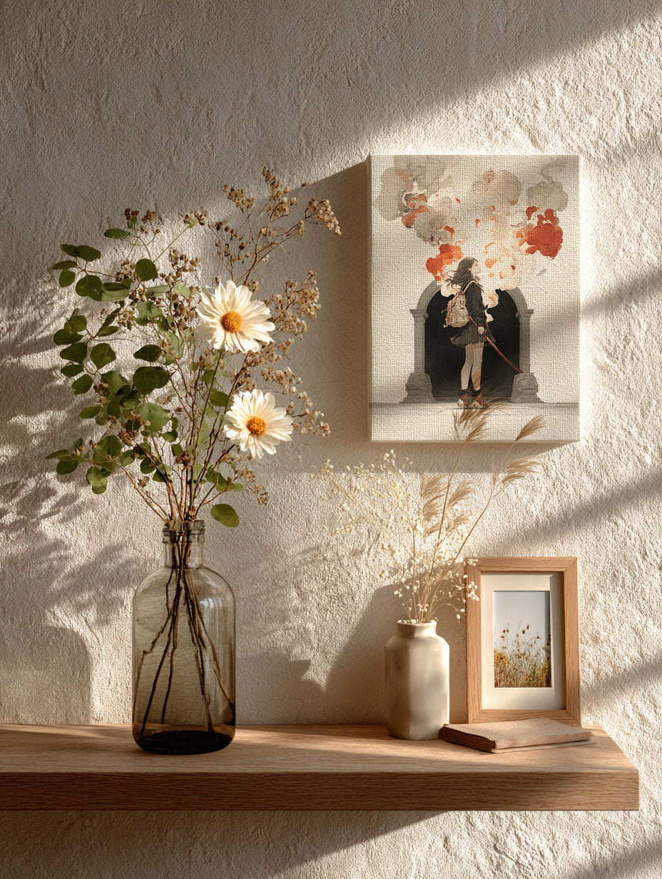 - 現実と幻想の境界で「美と死の共存」を描くアーティスト。 彼の作品には、終焉の中に咲く花、静かに武器を握る少女、 そして儚さの奥に潜む生命の力が繰り返し登場する。 色彩は控えめでありながら、血や花など象徴的な赤を効果的に用い、 無音の中に息づく「衝動」を描き出す。 天海凛の世界は、死を拒絶せず、 それを通してしか見えない「再生の美しさ」を語る。