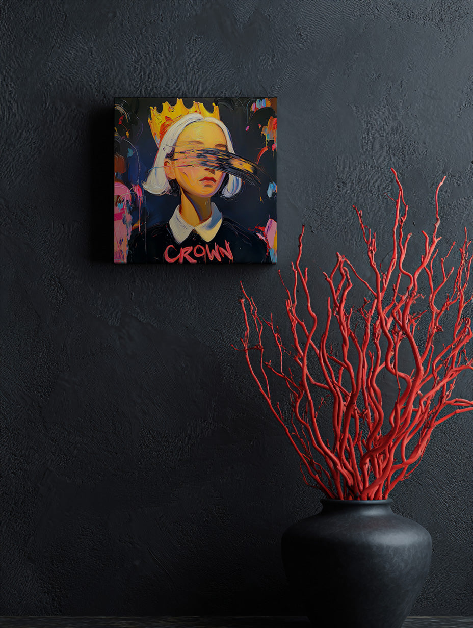 それは「誰のための王冠か?」「王とは何か?」という問いを静かに突きつける、現代的なポートレートとも言えるでしょう。