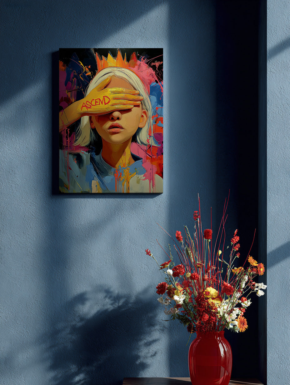 - ASc3nd(アセンド)は、ストリートアートの荒々しさとコンテンポラリーアートの構造性、そしてグランジやネオエクスプレッショニズムの衝動的な美学を融合させた、現代的な画風を持つアーティストです。その表現は固定化されることなく、人物・風景・抽象・記号など多様なビジュアルを通じて「上昇」「衝動」「孤高」「突破」といった概念を描き出します。 ダークトーンを基盤としつつ、鮮やかなアクセントカラーが突き刺さるように画面に光をもたらす色彩設計は、「深淵からの発光」や「静けさの中に宿る決意」を想起させ、観る者の心に深い余韻を残します。筆致はラフで大胆、ドリッピングやスプレーなども用いられ、時に破壊的でありながらも、緻密にコントロールされた構成を感じさせる——それはまさに“コントロールされたカオス”です。 キャンバスに描かれるのは、成功の物語ではなく、痛みや孤独を抱きながらもなお進もうとする“成り上がりの衝動”。にじむペイント、塗りつぶされた目元、金の王冠——それらは全て、上昇への欲望と過去の傷を昇華したシンボルです。ASc3ndの作品は、ただの勝者の姿ではなく、「敗北と再生をくり返してきた者にしか描けない王者の肖像」として迫ってきます。 アーティスト名に含まれる“3”という数字は、0でも1でもない「第三の道」を意味します。勝ち/負け、強さ/弱さ、正解/不正解といった二項対立を超え、自分だけのルールで這い上がる姿勢。それは、社会の枠組みの“外側”から上昇していく人々への強烈な共鳴となり、伝統を破壊しつつもリスペクトを忘れないという、反骨と品格の同居した美学へとつながっています。 象徴的に描かれる「目元を塗りつぶされた顔」は、匿名性の象徴であり、観る者自身がその姿に自らを重ねられるような“余白”を持ちます。誰でもない「誰か」が王冠を戴いているその姿に、観る者は「これは自分かもしれない」と無意識に投影していく——それは、誰しもが“ASc3nd=上昇者”になれる可能性を秘めた、極めてパーソナルでありながら普遍性のある表現です。 ASc3ndのアートには、現代を生きる上での葛藤、不確かさ、静寂の中に潜む誇りと反抗心が凝縮されています。そこにあるのは「希望」ではなく、「突破への意志」。静かに、しかし強く鳴り響く精神のビートが、すべての作品に脈打っています。