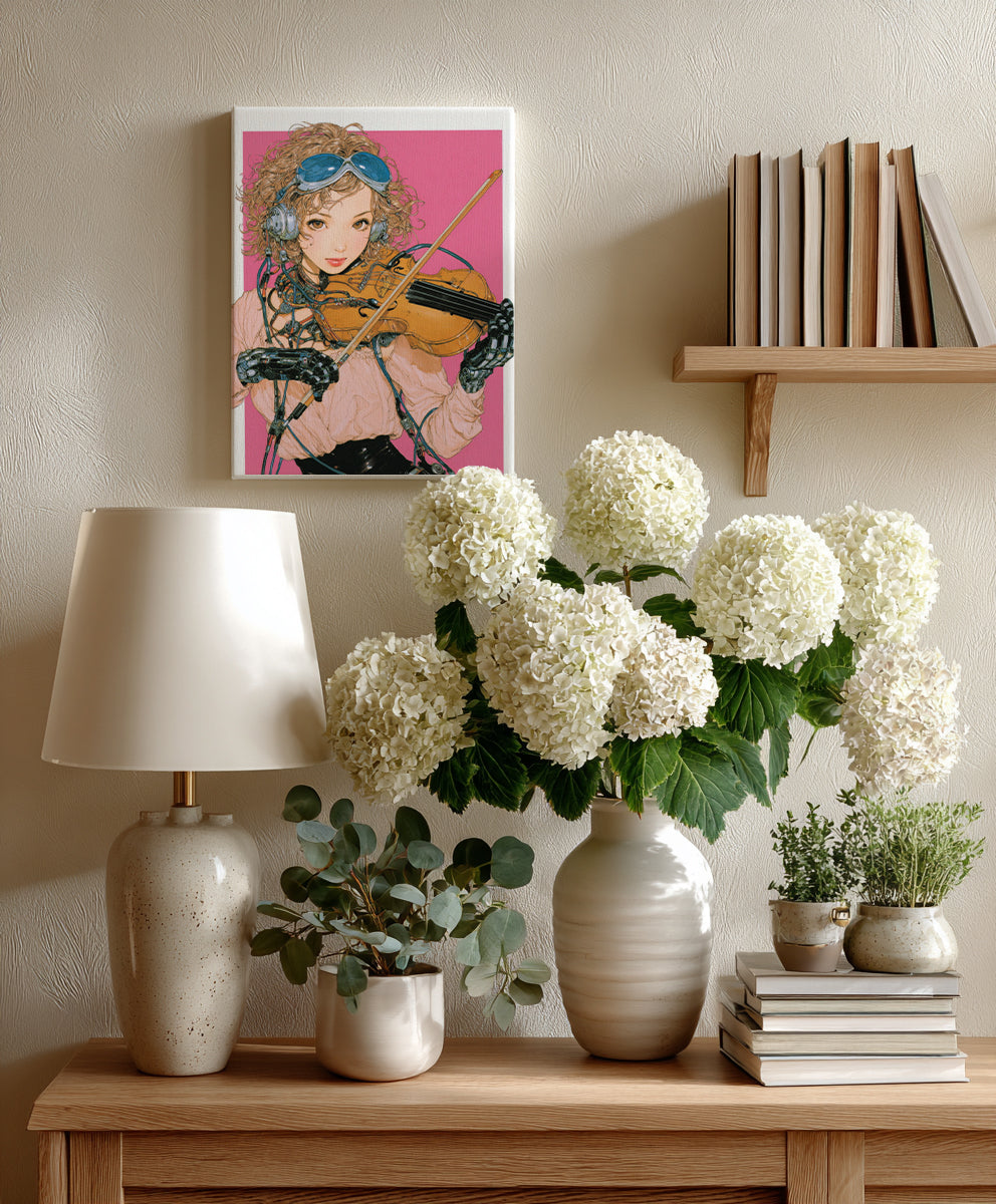 - 音楽文化とサイバネティクスに影響を受けたデジタルアーティスト。 ヘッドホン、楽器、配線といったモチーフを通して、感情がコード化される瞬間を視覚化する。 ポップな色彩と精密な構造描写の対比が特徴。