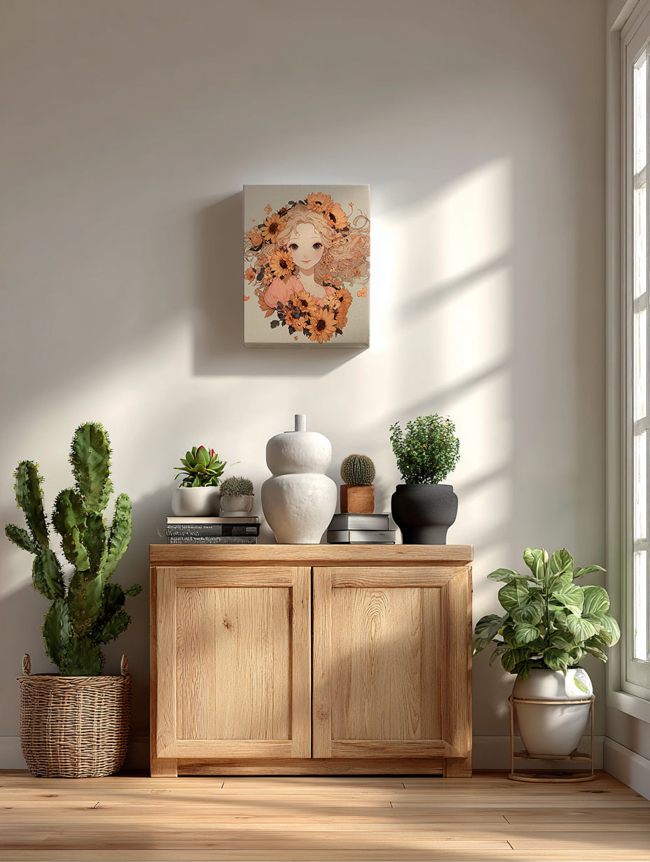 - フルーチェは、花と人物の気配をやわらかな線と淡い光で結びながら、季節の移ろいに宿る感情の揺らぎを描くアーティストです。 桃色や生成り、杏色といった繊細な色彩と、風にほどける髪や花びらのリズム。静けさの中に確かなぬくもりを感じさせる画面構成によって、可憐さだけではない芯のある詩情を立ち上げます。 肖像でありながら風景のようでもあるフルーチェの作品には、目覚め、余韻、解放、静謐といった心の季節が丁寧に織り込まれています。 眺めるたびに、飾る空間へやさしい光と呼吸をもたらし、見る人自身の記憶や感情とそっと重なっていくアートを生み出しています。