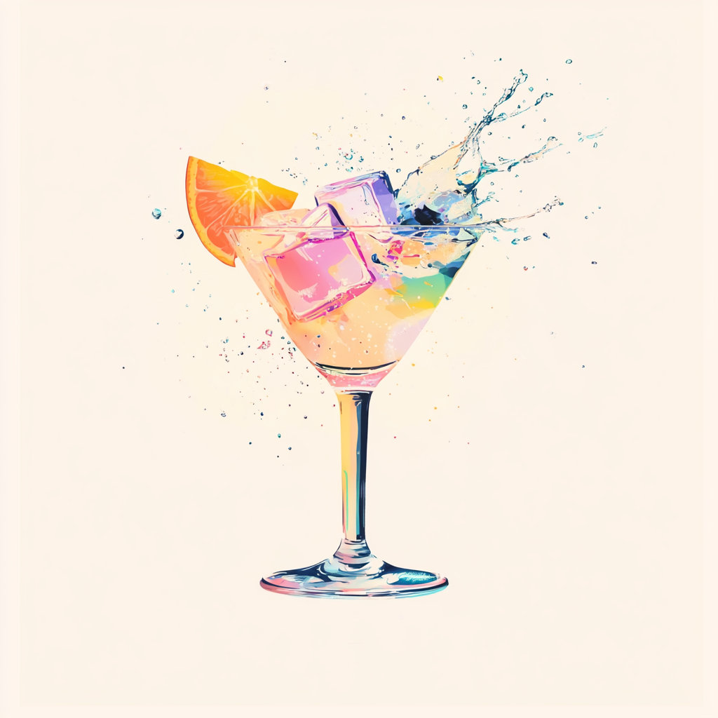 - カクテル、フルーツ、氷、しぶき。 それらすべてが、まるで踊るように宙を舞う。 Glaciaの作品は、「一瞬の動き」をパステルカラーの余白に閉じ込めた、ビジュアルポエムのようだ。 構成はミニマルで洗練されているが、そこに込められた表現は実に繊細かつドラマチック。 リアルな反射と、アニメ塗りのスムースなグラデーションが交差するそのタッチは、まるで「透ける夢」を見るような感覚を観る者に与える。 『Kiwi Margarita』『Blueberry Lassi』『Banana Pina Colada』など、それぞれの作品には味覚ではなく感覚としての“フレーバー”が漂う。 どこかキャラクターの存在を感じさせるような、目に見えない物語が、グラスの外側にぼんやりとにじんでいる。 爽やかで、ポップで、おしゃれ。 それでいて、どこか孤独や静けさすら感じさせるGlaciaの世界。 飲み物という日常的なモチーフに、ここまで透明な詩情を吹き込めるのは、まさに唯一無二のセンスと構成力ゆえだろう。 視覚で味わうファンタジックドリンク。 それが、Glaciaのアートである。