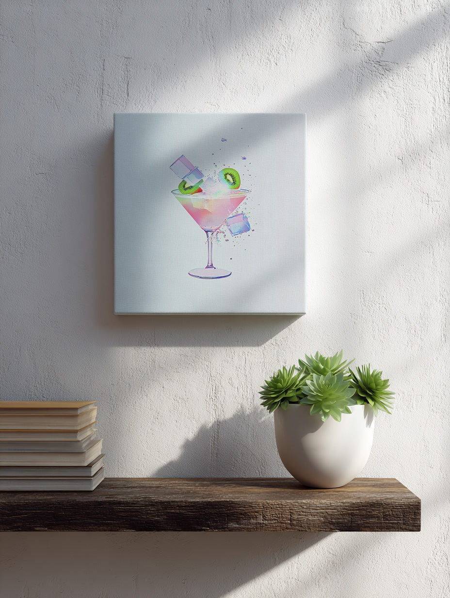 - カクテル、フルーツ、氷、しぶき。 それらすべてが、まるで踊るように宙を舞う。 Glaciaの作品は、「一瞬の動き」をパステルカラーの余白に閉じ込めた、ビジュアルポエムのようだ。 構成はミニマルで洗練されているが、そこに込められた表現は実に繊細かつドラマチック。 リアルな反射と、アニメ塗りのスムースなグラデーションが交差するそのタッチは、まるで「透ける夢」を見るような感覚を観る者に与える。 『Kiwi Margarita』『Blueberry Lassi』『Banana Pina Colada』など、それぞれの作品には味覚ではなく感覚としての“フレーバー”が漂う。 どこかキャラクターの存在を感じさせるような、目に見えない物語が、グラスの外側にぼんやりとにじんでいる。 爽やかで、ポップで、おしゃれ。 それでいて、どこか孤独や静けさすら感じさせるGlaciaの世界。 飲み物という日常的なモチーフに、ここまで透明な詩情を吹き込めるのは、まさに唯一無二のセンスと構成力ゆえだろう。 視覚で味わうファンタジックドリンク。 それが、Glaciaのアートである。