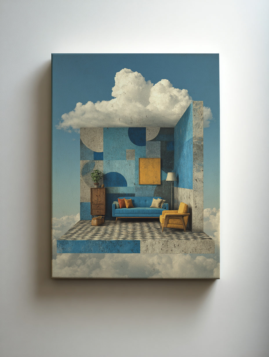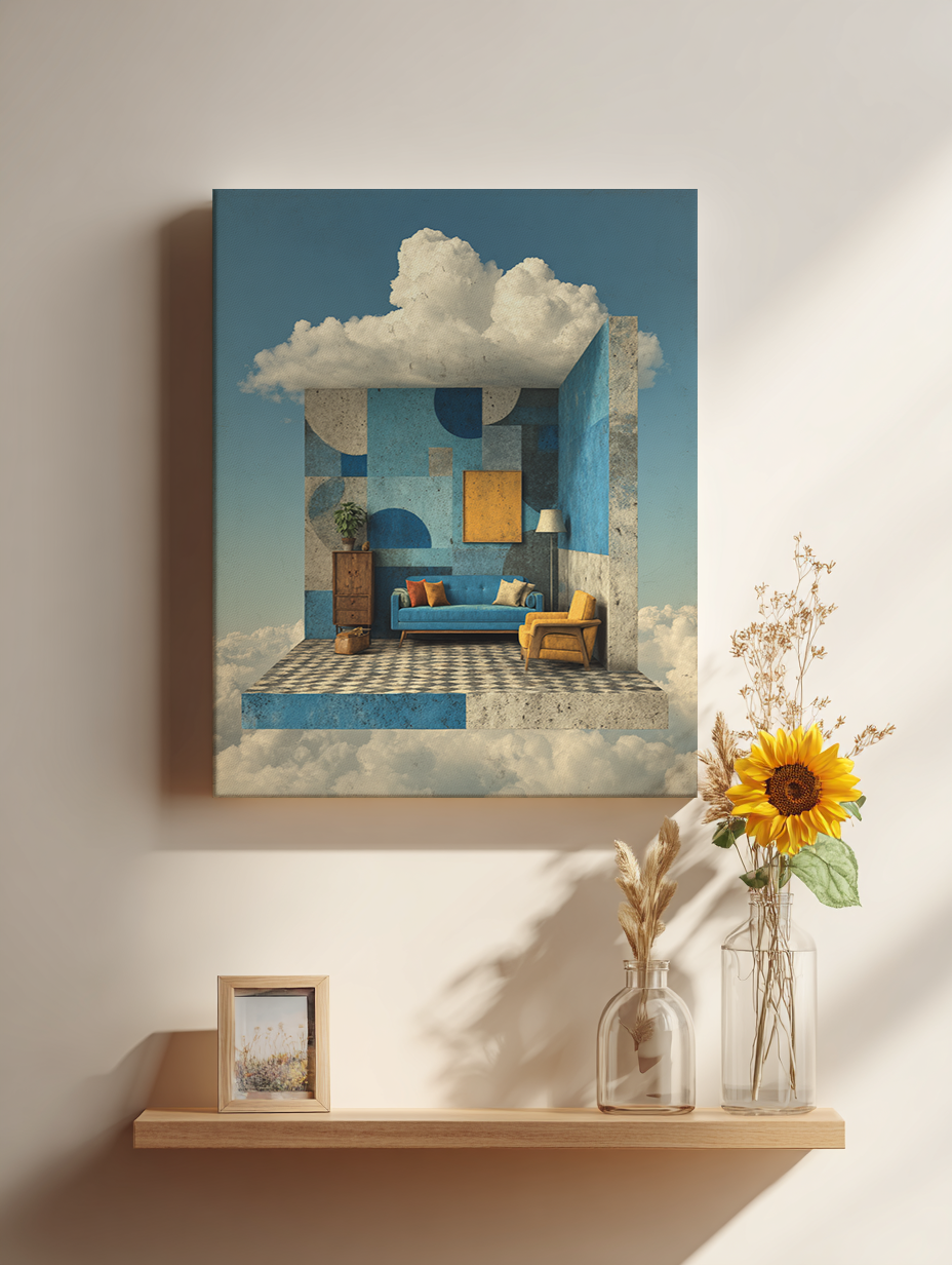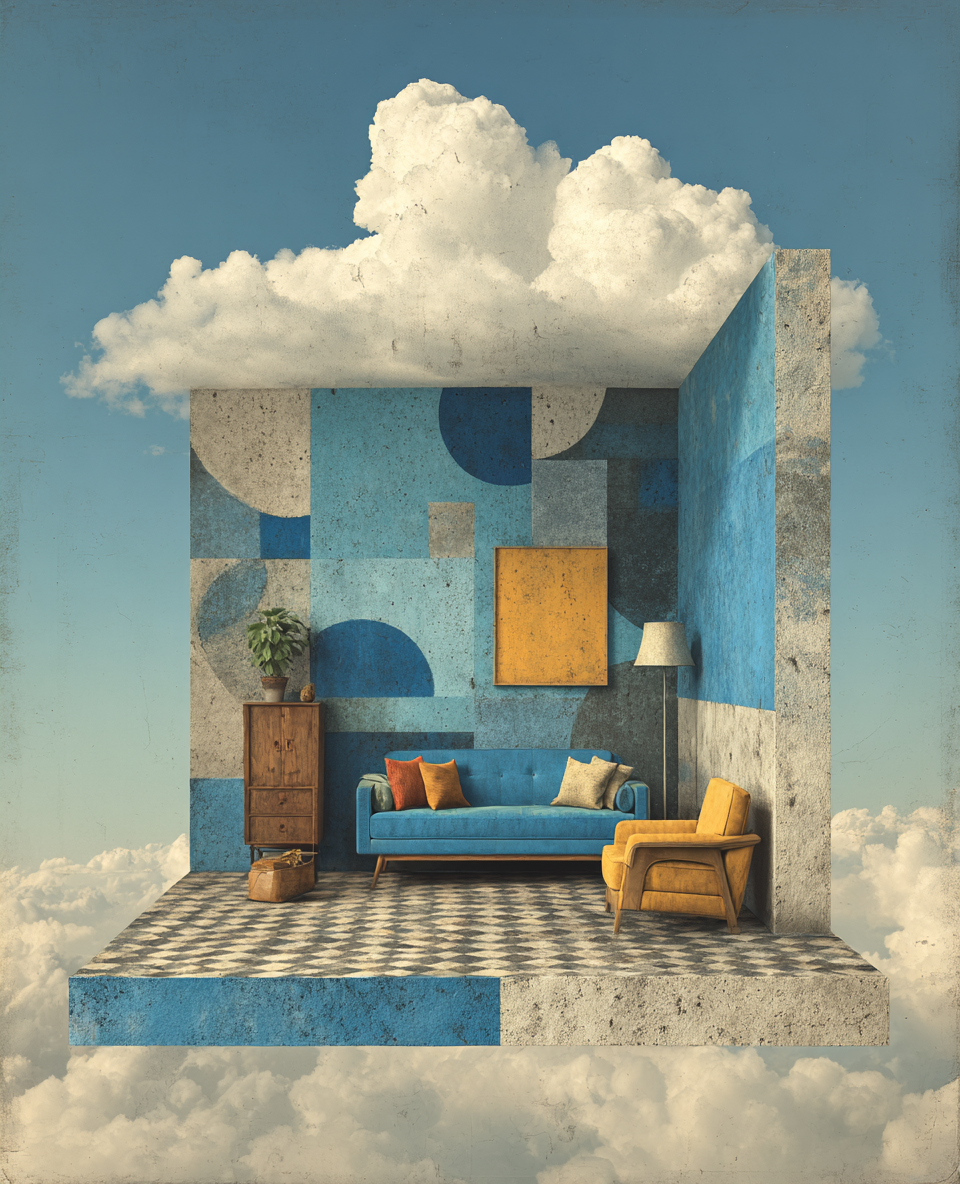 天空に浮かぶように設計された空間が、現実と幻想の境界を曖昧にするコンセプチュアル・アートです。