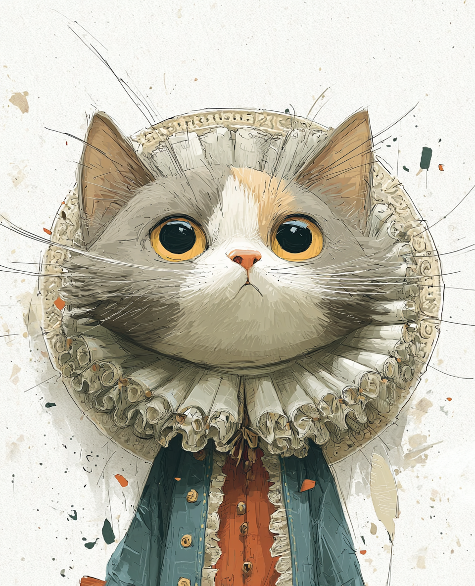 - ユーモアと上品さを共存させた独特のタッチで、動物たちに人間的な誇りと感情を与える。 色味の柔らかさとデジタル線画の繊細さを融合させ、 「小さな王国の肖像」をテーマに、静かな威厳をもつユーモラスな動物たちの姿を描き続けている。