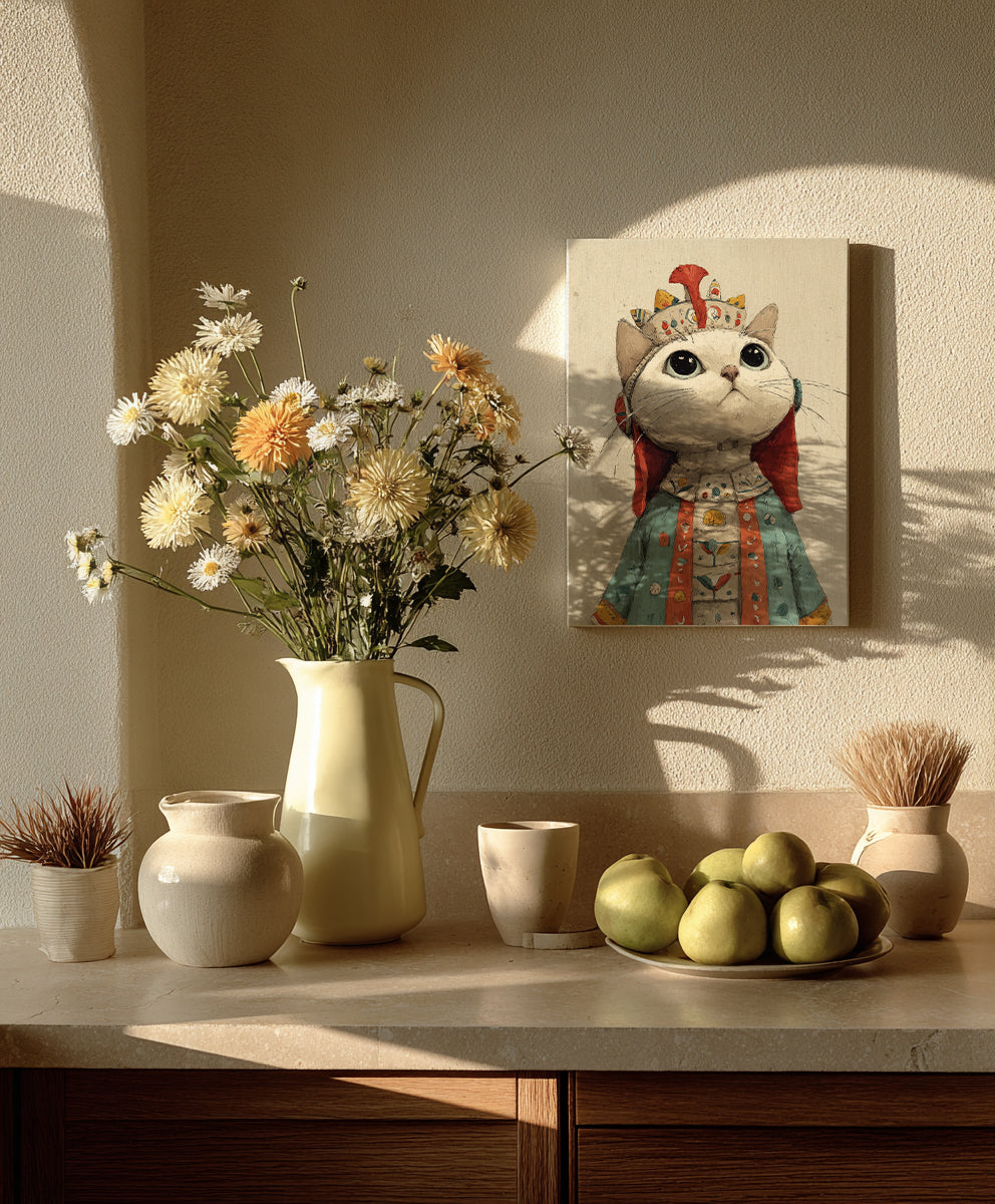 - ユーモアと上品さを共存させた独特のタッチで、動物たちに人間的な誇りと感情を与える。 色味の柔らかさとデジタル線画の繊細さを融合させ、 「小さな王国の肖像」をテーマに、静かな威厳をもつユーモラスな動物たちの姿を描き続けている。