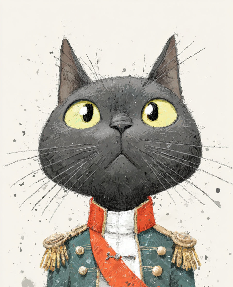 - ユーモアと上品さを共存させた独特のタッチで、動物たちに人間的な誇りと感情を与える。 色味の柔らかさとデジタル線画の繊細さを融合させ、 「小さな王国の肖像」をテーマに、静かな威厳をもつユーモラスな動物たちの姿を描き続けている。