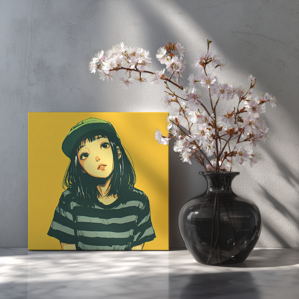 - ユズキ アメは、アニメ調のキャラクターポートレートに、現代的な色彩感覚と感情のゆらぎを融合させたアーティスト。 日本のマンガ・アニメ文化に深く根ざしながらも、デジタルイラストとしての洗練と個性を併せ持つ作風が特徴です。 背景には鮮やかな「黄色」を配し、登場人物たちの髪色や瞳にピンク・ブルー・グリーンといった大胆な色を使用。 その強い色使いと、視線をこちらに向ける構成が、観る者と登場人物を強く結びつけます。 筆致を感じる線画と、滑らかでやや平面的な塗り。 そこに光と影を添えることで、ポートレートに深みが生まれ、キャラクターがただの図像ではなく、確かな感情と存在感をまとって立ち現れます。 少女の可愛らしさや軽やかさと、色彩の鮮烈さや背景の一貫性が、シリーズとしての完成度を高めています。