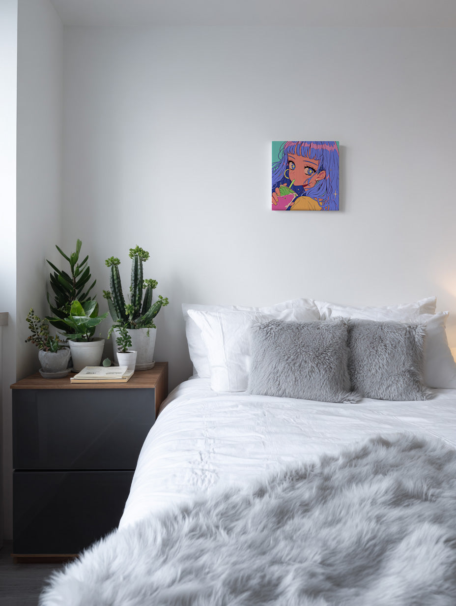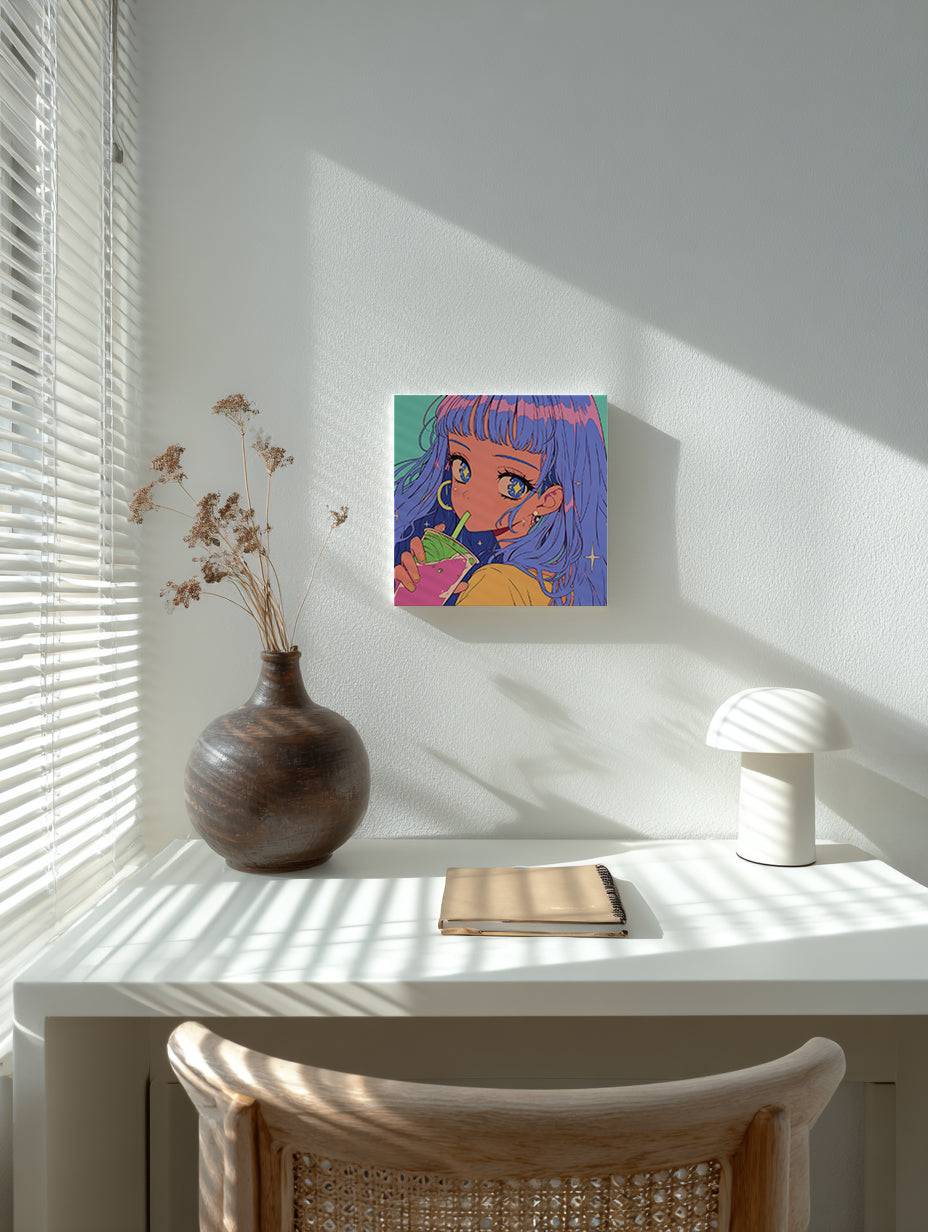 - 具象画、 現代アート、 人物、 日常、 ネオンカラー、 パステルカラー、 可愛い、 ユニーク、 スタイリッシュ、 デジタルアート、 ジークレー印刷、 キャンバスプリント、 スクエアサイズ、 飾る場所を選ばない、 空間を彩るアート、 インスピレーションをもたらす、 カフェ空間に、 おしゃれな空間に